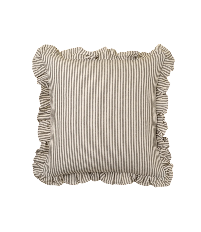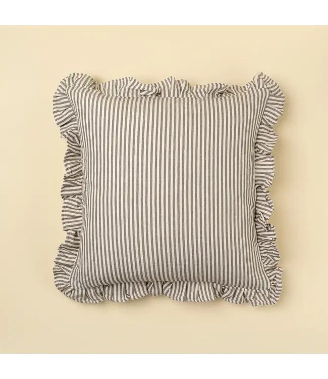 Add light and texture to your home with the Ruffle Thin Stripe Pillow. Handmade from a 50% linen, 50% cotton blend, this throw pillow pairs classic thin stripes with a soft ruffle border for a timeless French cottage feel. Its neutral palette makes it easy to mix and match with other pillow covers or layer onto your bedroom pillowscape for a look that’s both polished and relaxed.