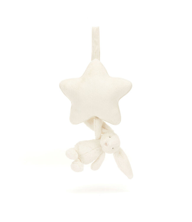 A soft cream star hides a sleepy surprise: tug gently on the mini-Bashful Bunny and a soothing lullaby begins to play. Perfect for cots, prams, and cosy corners, help little one drift into dreamland surrounded by Jelly joy.