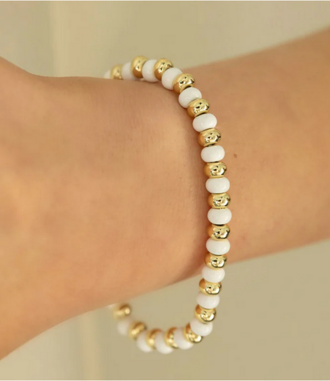 A colourful ball bead stretch bracelet with enamel and 14k gold plating over brass, designed to add a fun pop of colour to your everyday stack. Easy to slip on and even easier to style, this bracelet is perfect worn solo or layered with your favourite Belle pieces.