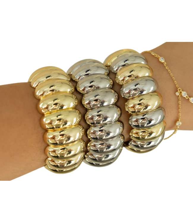 Say hello to your new everyday statement. The Bubble Bangle Bracelet features a bold, glossy bubble design that instantly elevates any look. Designed with a comfortable stretch fit, it slips on effortlessly while giving the illusion of a luxe solid bangle.