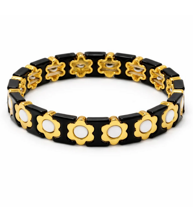 Meet your new go-to pop of colour This Belle enamel bracelet is made with 14k gold plating over brass and sealed with a waterproof e-coating, so you can wear it on repeat.. No overthinking required. Bright, bold, and perfect for stacking or wearing solo.