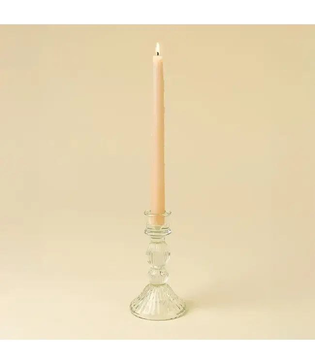 Elevate your candlelight moments with the Callista Glass Candleholder. Crafted from 100% moulded glass, this taper candle holder blends vintage-inspired charm with contemporary clarity. Its rounded silhouette and clear finish bring a soft elegance to any tablescape, mantle, or shelf, while creating the perfect setting for mood and atmosphere.