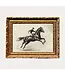 Cavalier Horse Sketch French Brass Gold Mould Framed Art by Luxe B Co. This stunning piece, encased in a high-quality frame, enhances the aesthetic of any space. It is ideal for those wanting to add an extra touch of decor to their kitchen, living room, bedroom, or shelf display.