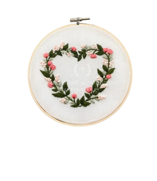 This pink floral heart hand embroidery kit is so great for beginners! And it's a perfect stitching project to celebrate Valentine's Day. This would also make the sweetest hoop to put in a new baby's nursery.