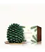 Delicately handcrafted to burn and glow beautifully, Frasier Fir's Molded Pinecone candle is sure to be the a standout in your home for this holiday season and beyond. Complete with a gold tray, the beautiful details of this deep green candle makes a unique home decor piece.