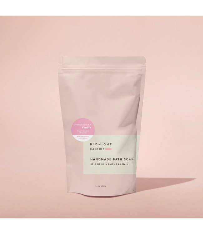 A warm, romantic bath soak designed to replenish the body and calm the senses. This mineral-rich blend combines soft rose and creamy vanilla to create a comforting, spa-like experience inspired by an evening stroll through a French garden.