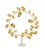 Metal gold leaves surround the circle form of this architecturally crafted, decorative object. Bringing interest to your built-ins or adding dimension to your entryway vignette, this piece looks good from any angle.