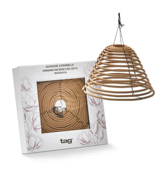 Inspired by the enjoyment of summer nights, tag's exclusive selection of hanging citronella incense coils are a trendy way to help set the scene while keeping unwanted bugs at bay. formulated with a blend of citronella oils and fragrance. light the end of coil then blow out the flame and allow the coil to smoke. do not leave coil in the rain or submerge in water.
