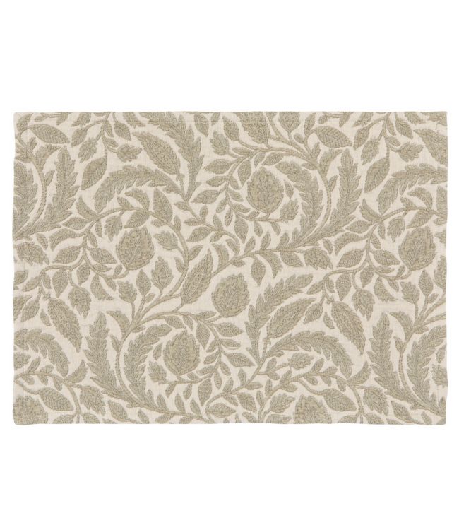 Our Topiary Herbal woven placemat with its embroidered leafy pattern evokes elegantly designed gardens, enhancing the dining table with a sense of sophistication. Dimensions: W13 x L19in Material: 100% Cotton Care Instructions: Machine