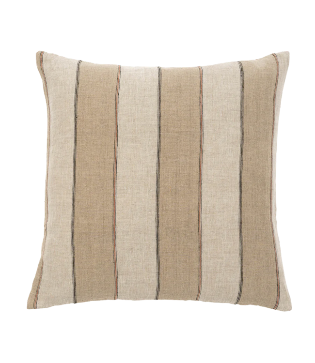 Always in style, the Ives Stripe Pillow features timeless stripes in a textural linen/cotton blend on the front, and solid cotton weave in a complementary tone on the back. Each pillow includes a premium Responsible Down Standard (RDS) certified feather/down filler, meaning you are choosing ethical practices as well as beautiful design. Hand wash recommended.