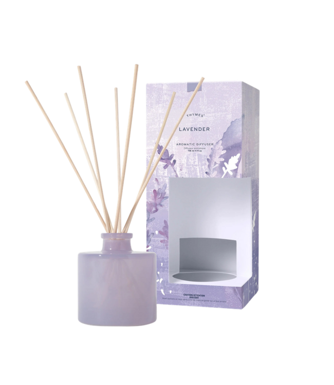 The Lavender Petite Reed diffuser offers a flameless way to fill your surroundings with the floral, soothing fragrances of lavender, rosewood, violet, and sage in a beautiful soft purple glass.