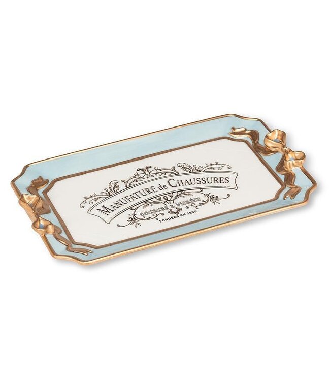 Classic lines meet romantic flourishes in this ceramic tray with elegant bow edging. Ideal for serving, organizing, or simply admiring, it brings a dose of vintage charm to modern living.