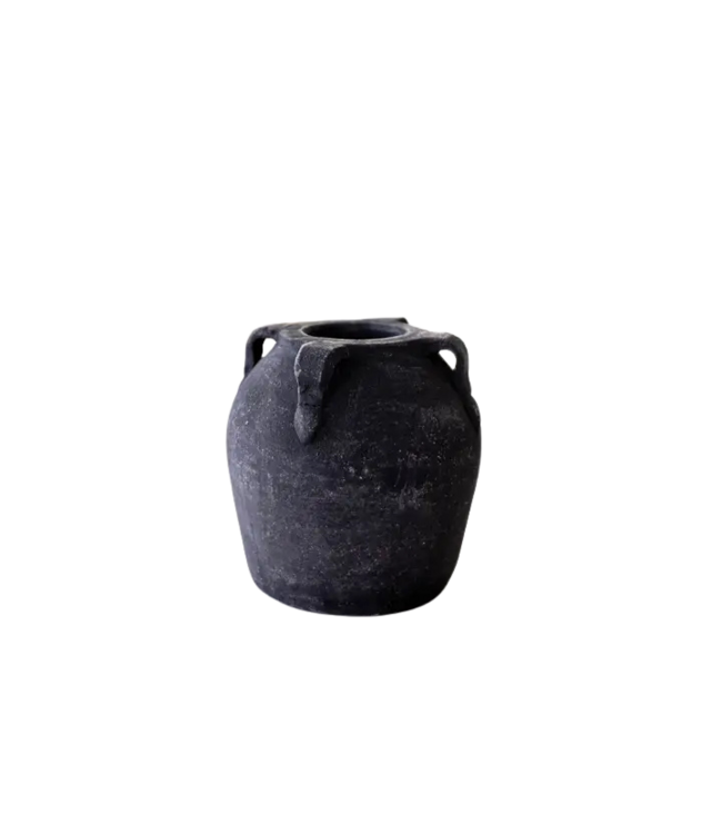 Vintage inspired vase, made from terracotta. It is ideal for bringing a touch of originality to your home decor, whether placed on shelves, coffee tables, dining tables, or in bedrooms. The soft, black colour of these vases allows for versatile styling options. They can be paired with dried flowers for a decorative touch, or displayed on their own for a simple yet elegant look.