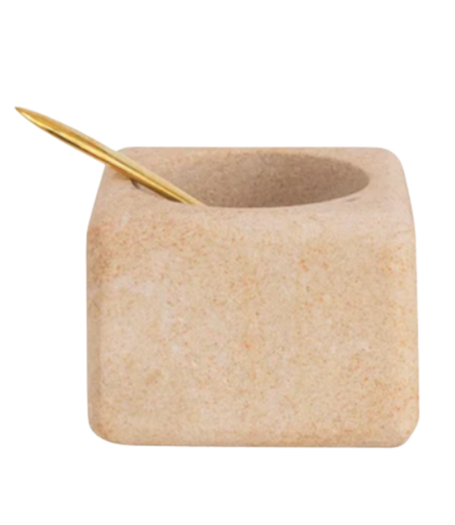 3" Square x 2"H Sandstone Pinch Pot w/ Brass Spoon