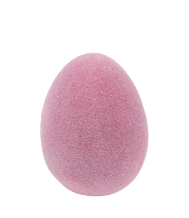 Softly rounded and velvet-flocked in blush pink, this small terracotta egg brings a gentle pop of color and a tactile note to shelves, trays, and bedside vignettes. Styled solo or nested with other figurines, its minimalist silhouette nods to nature and completes modern, whimsical displays. Approximate dimensions are 2.25 x 2.25 x 2.75 inches.
