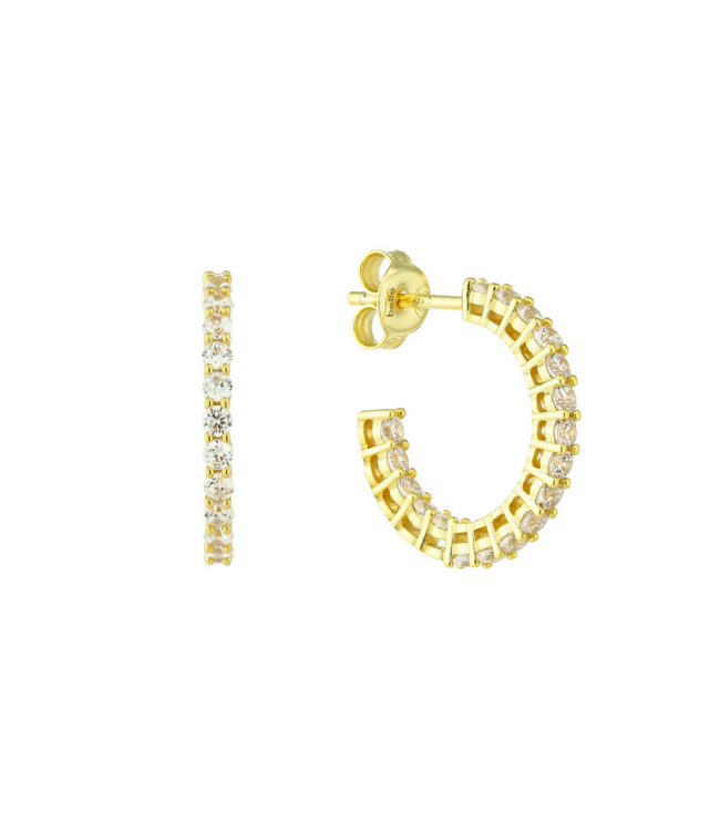 Level up your everyday look this semester! The Pavé Campus Hoop is a classic gold hoop reimagined with a row of shimmering pavé stones! chic enough for class, cozy fall coffee runs, and every campus crush moment in between. Lightweight, sparkly, and totally wearable, it’s the hoop you’ll be reaching for on repeat.