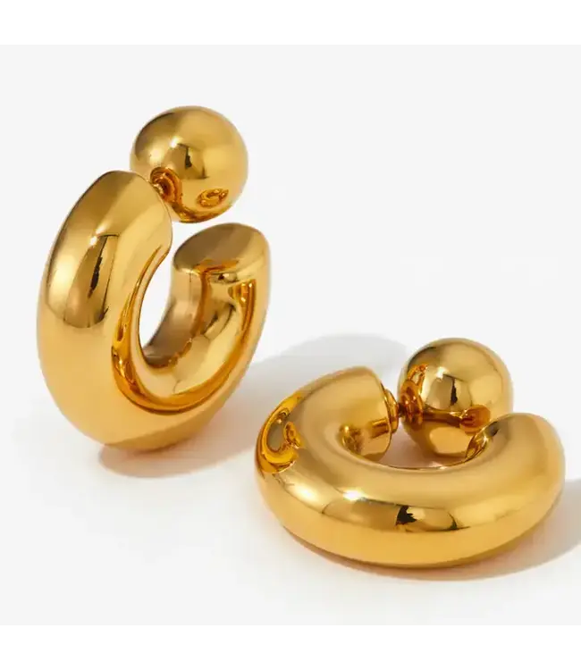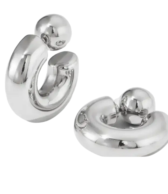 The Puffy O. With Ball back post closing side. It is Iconic medium hoop is our medium sized light weight high shine Puffy earring hoop. This is a big statement but not so oversized to look trendy.