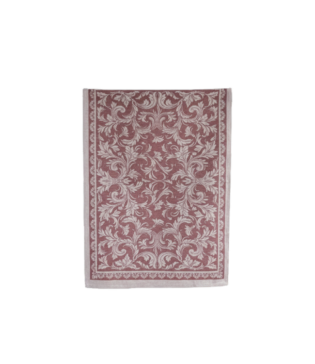 Intricate baroque motifs cover this stunning towel with elaborate scrolls and an enlarged border design on one end. It can be used as a guest towel as well.