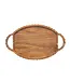 Crafted from beautiful acacia wood, this Scalloped Oval Wood Tray features intricate scallop detailing that adds a touch of elegance to any table. Perfect for serving snacks or displaying decorative items, this tray is a must-have. Approx 17x10”. Please hand wash