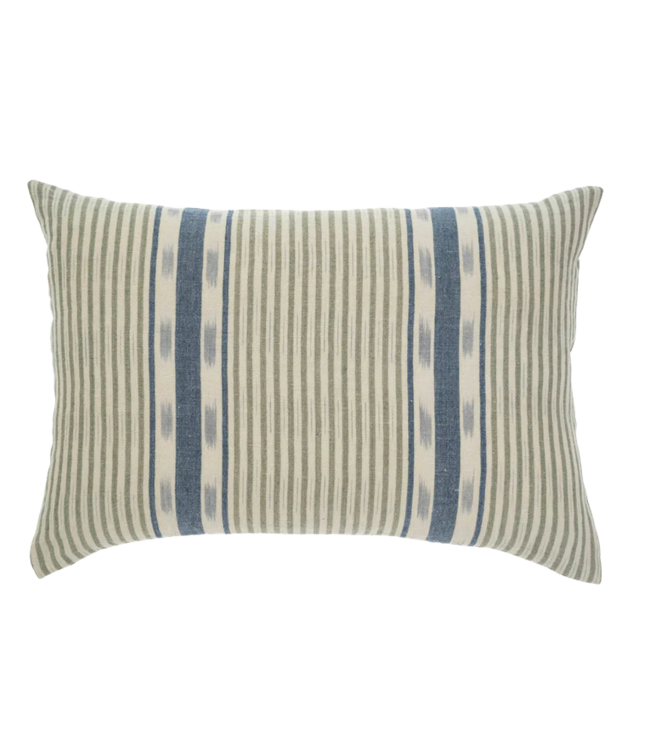 Our Seaview Linen Ikat Pillows have beautiful watery tones that style well with cool toned interiors. Made through the special ikat process of resist dyeing where threads are bound and dyed before being woven into fabric, the resulting pattern has a sense of movement and fluidity, reminiscent of the ocean.