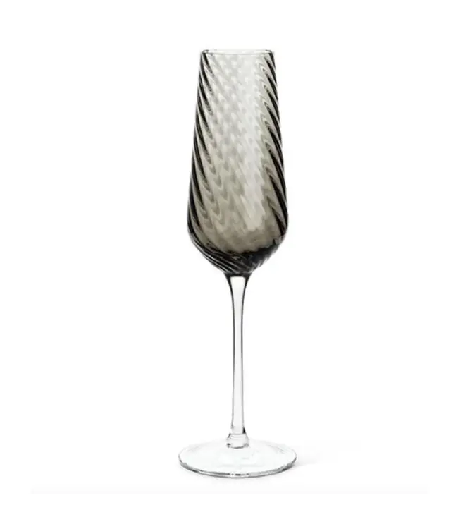 Add some dazzling style to your entertaining with this striking Twist Optic Flute. This mouth blown flute is crafted out of smoke-coloured glass for an understated complement to its uniquely textured surface, and a distinctive way to celebrate any toast or occasion. Hand wash only.