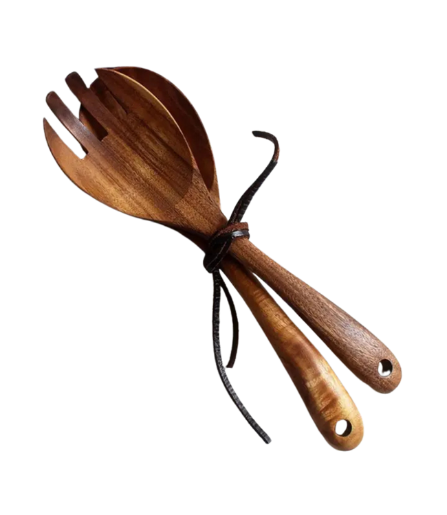 ✔️ High Quality Material - The Salad Servers is made of high-quality acacia wood, totally eco-friendly and non-pollution. No Glues and no painting. Completely handcrafted, each piece has a unique and natural design. The best material for cooking utensils, will not scratch or damage expensive cookers.
